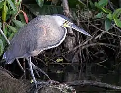The park's wildlife consists of birds, mammals, fungi, ferns, marine life, sea turtles, lakes and rainforest.[10] Tortuguero National Park acts as a refuge to many of these species which are also found in the La Selva Biological Station and Braulio Carrillo National Park. Threatened animals species in the reserve area are: the American crocodile (Crocodylus acutus), Baird's tapir (Tapirus bairdii), marine turtles such as Chelonia mydas and Dermochelys coriacea, the manatee or sea cow (Trichechus manatus) (the northeastern Caribbean wetland is its local feeding and reproduction area) and the tropical gar (Atractosteus tropicus) a living fossil brought under protection by Costa Rican legislation. The park is a breeding ground along the Caribbean coast of Costa Rica for many of the main fishes used in subsistence fishing.[6]