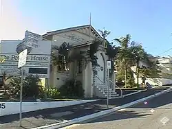 In 1893, a vacant Congregationalist church building and contents were purchased and re-erected on the Sturt Street site.[2][3] The first service was held in November 1893. In January 1903 the building was damaged by Cyclone Leonta. What could be salvaged was used to erect a church hall. Church records from 1912 reveal that this structure was intended to be temporary. A building fund was set up for a new church and hall, but it was not until 1922 that a replacement church was built. Lack of funds precluded a completely new building. Therefore a second hand one was found in the form of a disused powder magazine, eight miles from Townsville at Brookhill and purchased. The congregation dismantled and cleaned around 30,000 bricks. The building contract was signed for £832/6/- and the foundation stone was laid on 8 July 1922. It is highly likely that at this time the old timber church hall was attached to the rear of the new church.[1] The new church opened on Saturday 23 September 1922.[4][5]