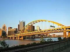 The Panhandle Bridge, a former railroad bridge, carries Pittsburgh Regional Transit's Blue and Red (formerly 42S/47L) light rail lines across the Monongahela River. Other notable bridges are Fort Duquesne Bridge, the Liberty Bridge, and The Three Sisters.