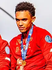 Alexander-Arnold has represented England at various youth levels and featured at the 2015 FIFA U-17 World Cup in Chile.[116] He also scored three goals for the England U19 team, including a brace against Croatia and another against Spain which secured England's qualification for the 2017 UEFA European Under-19 Championship.[117][118] He did not feature at the tournament itself as Liverpool reached an agreement with England to rest him ahead of the following season's league campaign, but the Three Lions went on to defeat Portugal in the final to claim their first ever title in the competition.[35][119] The month following the tournament, he was called up to the England U21 team for the first time for their UEFA European Under-21 Championship qualifiers against Netherlands and Latvia, and made his debut in a 3–0 win over the latter. Two more appearances followed with the U21 side before he was promoted and solidified his status within the senior England camp.[120][121]