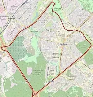 Troparyovo-Nikulino District is an administrative district (raion) at the southern edge of Western Administrative Okrug, and one of the 125 raions of Moscow, Russia.[4] The western border is the Moscow Ring Road, and the southern border is Leninsky Prospekt. The area of the district is 11.26 square kilometers (4.35 sq mi).[1] Population: 119,000 (2016 est.)