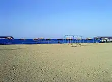 The water in it is partly mineralized, resembling saline waters.[2][3] It underwent reconstruction in 1977. Its total volume is 1.2 km3 (although some sources state a general volume of 0.8 km3). The surface area of the water is 210 km2, with an average depth of 4.8 meters. Its depth reaches 4 meters, and its maximum capacity is 46.0 m3/s. Through the intermediate canal, it collects surplus waters of the Zarafshan River and is replenished from the Amu-Bukhara canal that links to the Amu Darya River.[2] The Tudakul reservoir is a habitat for species listed in the Uzbekistan Red Book, including waterfowl, aquatic animals, large-scale fish, turtles, and gulls.[4] In 1960, the Tudakul Fish Hatchery was established on an area of 30 thousand hectares within the reservoir's foundation.[2] In 2020, a new resort, the "Silk Road Family Repost" touristic beach zone, was established on the shore of the Tudakul Quyimozor water reservoir. A few weeks after this event, the Tudakul Quyimozor reservoir was registered under the Ramsar Convention.[5][6][4]