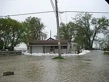 The history of Twin Lakes Beach as a recreational area began around 1911 when Meindl built a hunting lodge, as hunting was the primary activity of the beach at the time.[3] The lodge and others over time were used in the summer for fishing and holidays as well. About six or seven other medical doctors also used the area for hunting including Howden and Lambert. Over time Howden and Meindl acquired the land that comprises most of the present day beach from a local farmer with Howden acquiring over one mile of land in the Rural Municipality of Woodlands while Meindl acquired approximately 3 miles of land in the Rural Municipality of St. Laurent.[3] It was after this time that the land was subdivided and many people began to purchase lakefront properties in the area initially mainly for summer homes and cottages, but also for permanent residences later on. Meindl donated 580 feet of beach front land for the local Metis people of St. Laurent for recreational use, which later became Meindl Park (French: Parc Meindl), named in his honour.[4] Prior to the flooding of 2011, the highest recorded water level on Lake Manitoba was during the summer of 1955 when the water level gauge at nearby Delta Beach recorded 816.32 feet above sea level, although the readings were subject to wind setup due to the long fetch length of the lake to the north.[5] During this year some residents were forced to boat to their properties as the road was underwater.