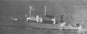 The ship was reassigned to the University of Miami to replace the R/V Pillsbury, which was to be retired in summer of 1971, and operate as R/V James M. Gilliss, one of the Navy owned vessels of the University-National Oceanographic Laboratory System (UNOLS) fleet.[3][4] As an example of work during this phase the ship, along with University of Miami's R/V Columbus Iselin was among other government and institutional ships taking part in the Global Atmospheric Research Program Atlantic Tropical Experiment in 1974.[5] The ship went out of UNOLS service in 1979.[3] Two new ships, ordered by the National Science Foundation and due for completion in June and September 1981 were to replace Duke University's R/V Eastward and University of Miami's R/V James M. Gilliss respectively.[6]