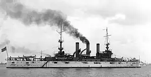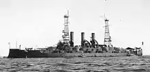 On 30 November, the ship left Boston to begin preparations to join the world cruise of the Great White Fleet.[3] The cruise of the Great White Fleet was conceived as a way to demonstrate American military power, particularly to Japan. Tensions had begun to rise between the United States and Japan after the latter's victory in the Russo-Japanese War in 1905, particularly over racist opposition to Japanese immigration to the United States. The press in both countries began to call for war, and Roosevelt hoped to use the demonstration of naval might to deter Japanese aggression.[4]