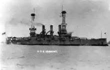 USS Vermont (BB-20), a Connecticut-class battleship, was the second ship of the United States Navy named after the 14th state. She was the third member of the class, which included five other ships. The Connecticut-class ships were armed with a main battery of four 12-inch (305 mm) guns and had a top speed of 19 knots (35 km/h; 22 mph). Vermont was laid down in May 1904 at the Fore River shipyard and launched in August 1905. The ship entered service with the Atlantic Fleet in March 1907.