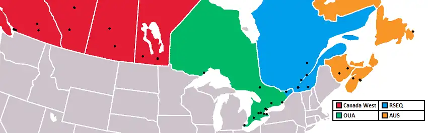 • Note: The Ottawa Gee-Gees moved from the OUA to the RSEQ starting with the 2016-17 season.[35]