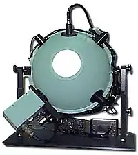 In 1892, W. E. Sumpner published an expression for the throughput of a spherical enclosure with diffusely reflecting walls.[1] Ř. Ulbricht developed a practical realization of the integrating sphere, the topic of a publication in 1900.[2] It has become a standard instrument in photometry and radiometry and has the advantage over a goniophotometer that the total power produced by a source can be obtained in a single measurement. Other shapes, such as a cubical box, have also been theoretically analyzed.[3]