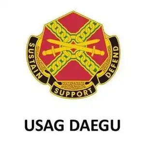 United States Army Garrison Daegu, also known as USAG Daegu is a medium-sized United States Army Garrison headquartered in the Nam District, Daegu in South Korea.[1] USAG Daegu provides base operations and support for Camps Henry, Walker and George in Daegu, Camp Carroll in Waegwan, Chilgok County, the Busan Storage facility and Pier 8 in Busan Metropolitan City, the DLA Disposition Services in Apo-eup Gimcheon and various other remote mountaintop sites. USAG Daegu also provides support to the United States Navy at Commander Fleet Activities Chinhae in Jinhae-gu, to the United States Marine Corps at Camp Mujuk in Pohang, and the United States Air Force at K-2 Airfield colocated at the Daegu International Airport. Nearly 10,000 Soldiers, Family members, Civilian employees, KATUSA Soldiers and Korean employees live and work on USAG Daegu installations.