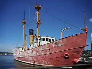 Light Vessel Number 83 (LV-83) Swiftsure is a lightship and museum ship owned by Northwest Seaport in Seattle, Washington. Launched in 1904 at Camden, New Jersey and in active service until 1960 after serving on all five of the American west coast's lightship stations, it is the oldest surviving lightship in the United States, the only one still fitted with its original steam engine, and the last lightship with wooden decks. LV-83 was designated a National Historic Landmark in 1989, and has been undergoing major restoration since 2008.[2][4][5]