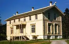 The famous Norwegian violinist and composer Ole Bull had his summer house here. In 1858, he bought a farm in Valestrand. The house was designed during 1865 by his youngest brother, architect Georg Andreas Bull. Ole Bull lived there for a time principally between tours. In 1872, he bought property on the island of Lysøen in what is now Bjørnafjorden Municipality, south of Bergen which became the primary residence of his family.