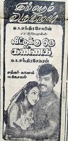 Veetuku Oru Kannagi (transl.A Kannagi for every home) is a 1984 Indian Tamil-language film, directed and produced by S. A. Chandrasekhar.[1] The film stars Vijayakanth, Sujatha, Nalini and Sangili Murugan. It was released on 1 July 1984.[2]