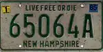 - 1 2 3 Tanner, Eric N. "New Hampshire Passenger License Plates". allaboutlicenseplates.com. Retrieved February 25, 2021.