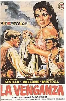 Vengeance (Spanish: La venganza) is a 1958 Spanish drama film directed by Juan Antonio Bardem. It was co-produced with Italy, starring Italian Raf Vallone. Francisco Rabal narrates the film. It was shown at the 1958 Cannes Film Festival[1] but not released in Spain until the following year. The film had serious troubles with Spanish censorship. Bardem even went to prison and it was an international scandal. It was nominated for the Academy Award for Best Foreign Language Film.[2]