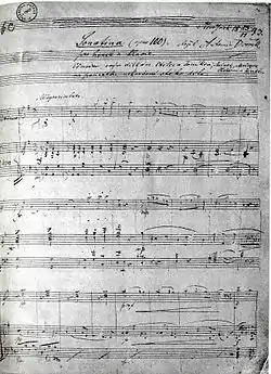 The title page of the autograph score of Dvořák's Sonatina with dedication, 1893