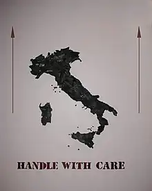 In May 2014 he exhibited "Superfetazioni" at the Capitoline Museums in the Centrale Montemartini in Rome.[7] His work "Fragile" was shown at the Maam Museum in Rome.[8] In May 2015 he exhibited a solo show with the provocative title L’Italia brucia (Italy is burning) at the Sant’Andrea Gallery in Rome and then he executed a performance for Exploit in Milan. In the same year he intervened with an installation at the Cà Pesaro Museum in Venice on the occasion of the Venice Biennale.