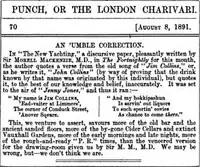 - 1 2 3 Lemon, Mark (8 August 1891). "An 'umble corrections". Punch. 101: 70. Retrieved 25 November 2008.