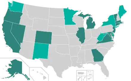 On January 1, 2016, the Oregon Motor Voter Act implemented automatic voter registration of eligible citizens tied to the process of issuing driver licenses and ID cards, with the person having the right to opt out.[60] By April 2016 three more states – California, West Virginia, and Vermont – adopted the system, and in May 2016 Connecticut announced plans to implement it administratively rather than by legislation.[61][62] Alaskan voters approved Measure 1 on November 8, 2016, to allow residents to register to vote when applying annually for the state's Permanent Dividend Fund.[63][64] Voter approval of Measure 1 made Alaska the first state to implement automatic (opt-in) voter registration via ballot initiative. New York passed automatic voter registration on December 22, 2020, with implementation to commence in 2023.[65] Several more states have considered legislation for automatic registration.[66] On August 28, 2017, Illinois set July 1, 2018, for implementation of automatic voter registration at motor vehicle agencies, and a year later at other state agencies.[67]