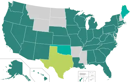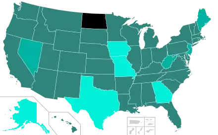 As of August 2020, online voter registration was available in 41 states, the District of Columbia, and Guam, with two additional states (Maine and Oklahoma) phasing in implementation.[22] North Dakota does not have voter registration. Since a federal judicial order in September 2020, Texas allows residents to register to vote online if and when they are renewing their driver's licenses or state identification cards.[23]