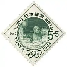 Water polo at the 1964 Olympics on a stamp of Japan