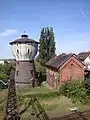 Another tower, built in 1907 and now unused, is located at the Września railway station, near several apartment buildings and an overpass. Another, smaller tower was destroyed during the bombing on 5 October 1939.