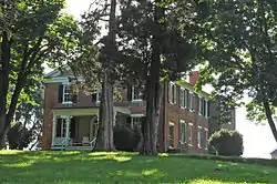 The two-story, three bay by five bay, brick dwelling reflects the Greek Revival style. It has a front gable roof and sits on an English basement. A six-bay-wide, two bay-deep rear addition designed by noted English architect Edmund George Lind (1829–1909) was added in 1859, creating a "T"-plan dwelling. Also on the property are the contributing meat house (c. 1835), stuccoed frame farmhouse (c. 1860), cistern (c. 1835), stone spring house ruin (c. 1835), and stone slave quarters ruin (c. 1835).[11]