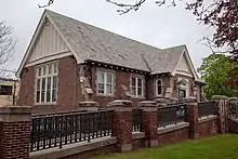 The original West Newton Branch Library at 25 Chestnut Street is a Tudor Revival structure built in 1926 with funds raised by community subscription. Over the front door carved in the stone lintel are the words "Memorial Library". The building has now been re-purposed as an annex to the city police headquarters on Washington Street.