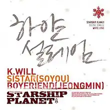 "White Love" is the second collaboration single by labelmates K.Will, Sistar and Boyfriend, released under the name Starship Planet (Starship Entertainment). This digital single project is a way of thanking the fans who have cheered on Starship. The special digital single was released digitally on November 29, 2012.