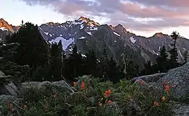 White Mountain is a 6,378-foot (1,944-metre) mountain summit located in the Olympic Mountains, in Jefferson County of Washington state.[1] Situated in Olympic National Park, its nearest higher peak is Mount La Crosse, 0.95 mi (1.53 km) to the northeast, and an unnamed glacier lies in the north cirque between the two peaks.[2] The Anderson massif lies 3.1 mi (5.0 km) to the north of White Mountain. Precipitation runoff from the mountain drains into tributaries of the Quinault River and Duckabush River.
