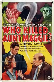 Who Killed Aunt Maggie? is a 1940 American mystery film directed by Arthur Lubin and starring John Hubbard, Wendy Barrie and Mona Barrie.[1][2] It was produced and distributed by Republic Pictures.
