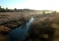 The Wilge River has its origin about 15 km WNW of Leandra, in the highveld grasslands between this town and Springs, Gauteng.[2] It flows roughly northwards until it is joined by its main tributary, the Bronkhorstspruit, that joins its left bank about 25 km downstream of Bronkhorstspruit town. Then it flows in a northeastern direction until it joins the Olifants about 12 km upstream from the head of the Loskop Dam reservoir.[3]