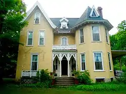 Built in 1880, this historic structure is a three-story, rectangular, brick building that measures forty-two feet across and thirty-two feet deep. It was designed in the Victorian Gothic style. A two-story frame rear extension was built in 1890. It features a steep roof and has a variety of gable ends, bargeboards, and windows.[2]