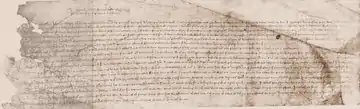 - ↑ The following day, 23 November 1455, Courtenay replied in much the same spirit, informing Bonville that, for Courtenay, "all frendly greting stonde for nougt". The Earl then informs Bonville that he would refute Bonville's slurs "upon thy fals body prove at time and place by me appoynted".[108] Martin Cherry has noted how their antagonistic greetings "neatly parodied" the usual form of greetings that contemporary letters began with.[109]