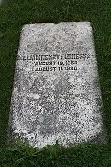 Furness died the day after his 54th birthday. He is buried at Laurel Hill Cemetery in Philadelphia.