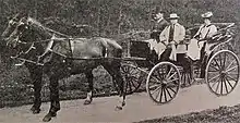 Around 1874 Morton, his wife and six children moved south to gain easy access to the metropolis, setting up their home and his office at 'Royston Villa', 276 New Cross Road in Deptford.[36] Early on Morton had developed a love of horses, learning to ride at an uncle's farm;[1] each morning he drove his carriage and pair to his Egyptian Hall. He maintained a carriage, his favoured choice of transport, until the beginning of the Great War when the government commandeered his horses and he reluctantly purchased a motor car.[37]