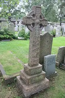 He is buried in the 20th century extension to Dean Cemetery near its centre.