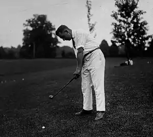 Ogg didn't fare so well in the 1924 PGA Championship held September 15–20 at the French Lick Springs Golf Club in French Lick, Indiana. Walter Hagen, the 1921 champion, defeated Jim Barnes in the finals 2 up.[9] Most of the competitors in the starting field of 32 first had to qualify in a 36-hole stroke play qualifier on Monday, September 15. Ogg succeeded in qualifying, however he lost to Bobby Cruickshank 7 and 5 in the first round.[10]