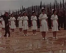 Over 11,000 women served in the American military during the War, the majority of whom were military-trained, graduate nurses.[87] Most were fresh out of college and had volunteered their service while other more experienced nurses were sent to Vietnam to assist in training many South Vietnamese women.[88] The first group of US Army nurses arrived in Vietnam in 1956, and by 1973 nearly 5,000 American women would be serving in Vietnam.