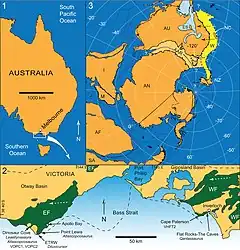 The Wonthaggi Formation is an informal geological formation in Victoria, Australia whose strata date back to the Early Cretaceous. It is part of the Strzelecki Group within the Gippsland Basin. Dinosaur remains are among the fossils that have been recovered from the formation.[1][2] It is partially equivalent to the Eumeralla Formation.