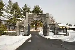 Woodlawn Cemetery is a historic cemetery on Woodlawn Street in Clinton, Massachusetts. The oldest portion was laid out in 1853 by Joshua Thissell in the rural cemetery style popular at the time, and was one of the first municipal projects following the town's incorporation. It occupies a hilly parcel of over 33 acres (13 ha), about 1 mile (1.6 km) from the center of town. It was expanded twice, in the 1890s and in the 1920s. Prominent burials include Erastus and Horatio Bigelow, the town's early leading businessmen.[2]