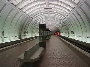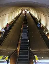Like other stations on the Red Line constructed with rock-tunneling methods, it is rather deep, at 150 feet (46 m) below ground. After Forest Glen, it is the second deepest station in the system.[4][5] The escalators have a vertical rise of 102 feet (31 m); they are the longest in the District of Columbia and the third longest on the Metrorail system (behind Wheaton and Bethesda).[6]