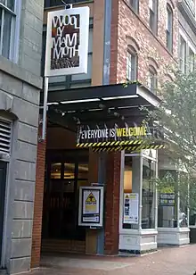 Woolly Mammoth was founded by Howard Shalwitz, Roger Brady, and Linda Reinisch in 1980.[4] "While working odd jobs to make money, we held our first auditions outdoors in Glover Park and started improvisatory workshops in the auditorium of the HHS building."[5] It opened its first season in The Church of the Epiphany parish hall near Metro Center.[5] Outgrowing this initial home, the company rented a warehouse in the 14th Street corridor, where it performed for 13 years. When that space ceased to be available, Woolly Mammoth became a nomad company, performing in various venues in the DC area. During this period the company worked with the Pennsylvania Avenue Development Corporation to acquire space for and to outfit a new theatre.[6]