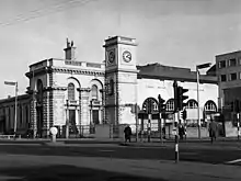 The station building was initially a modest structure dating from 1848. The station roof was erected by Richard Turner, Dublin. The station was extended in 1873–1875, and again in the 1890s when the building work was under the control of Berkeley Deane Wise. The 1890s rebuilding resulted in the erection of the clock tower, concourse, tramway canopy, hotel, freight offices and goods store.[2]