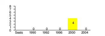 At the early 2011 Slovenian parliamentary election on 4 December 2011, the party won 0.86% of the vote, thus not gaining any seat in the National Assembly.[2] In the 2008 election, the Youth Party ran a joint list with the Slovenian People's Party. The joint list secured 5 seats on 5.2% of the vote.[3] At the parliamentary elections on 3 October 2004, the party won 2.1% of the popular vote and no seats. At the 2000 elections, the party won 4.34% of the vote and 4 seats.