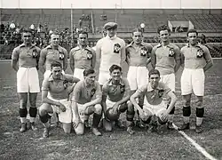 The first national team was in the kingdom that existed between the two world wars. The Football Federation of what was then the Kingdom of Serbs, Croats and Slovenes was founded in Zagreb in 1919 under the name Jugoslavenski nogometni savez (and admitted into FIFA), and the national team played its first international game at the Summer Olympics in Antwerp in 1920. The opponent was Czechoslovakia, and the historic starting eleven that represented Kingdom of SCS on its debut were: Dragutin Vrđuka, Vjekoslav Župančić, Jaroslav Šifer, Stanko Tavčar, Slavin Cindrić, Rudolf Rupec, Dragutin Vragović, Artur Dubravčić, Emil Perška, Ivan Granec, and Jovan Ružić. They lost by a huge margin 0–7, but nonetheless got their names in the history books.