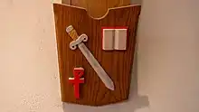 Our ninth shield depicts a Boat. This represents Jude, who was the brother of the apostle St. James the Less. Both were related to Jesus as distant cousins. St. Jude has been credited as the author of the brief Epistle of St. Jude found in the New Testament. The boat is the symbol most often associated with St. Jude alludes to Jude's earlier life, and to Jude's voyages in his part in the mission of founding the early church. A ship is also a well-known symbol of the Christian Church. It was also a great symbol during times when Christians needed to disguise the cross, since the ship's mast forms a cross in many of its depictions.