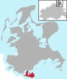 Until 12 June 2004 the municipality of Zudar that lies on the peninsula was independent. From that date it was incorporated into the town of Garz.[1] This also affected the former Zudar parishes of Freudenberg, Foßberg, Glewitz, Grabow, Losentitz, Maltzien, Poppelvitz and Zicker.