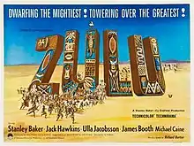 Zulu received highly positive reviews from critics. Bosley Crowther of The New York Times wrote that "if you're not too squeamish at the sight of slaughter and blood and can keep your mind fixed on the notion that there was something heroic and strong about British colonial expansion in the 19th century, you may find a great deal of excitement in this robustly Kiplingesque film. For certainly the fellows who made it, Cy Endfield and Stanley Baker, have done about as nifty a job of realizing on the formula as one could do."[33] Variety praised the "intelligent screenplay" and "high allround standard of acting," concluding, "High grade technical qualities round off a classy production."[34] Richard L. Coe of The Washington Post wrote that the film was "in the much-missed tradition of 'Beau Geste' and 'Four Feathers.' It has a restrained, leisurely tension, the heroics are splendidly stiff-upper-lip and such granite worthies as Stanley Baker and Jack Hawkins head the cast."[35] Whitney Balliett of The New Yorker wrote that the film had "not only refurbished all the clichés of the genre but given them the sheen of high style ... It has already been pointed out that 'Zulu' is in poor taste. But so are such invaluable relics as G. A. Henty and Rider Haggard and Kipling."[36] The Monthly Film Bulletin called Zulu "a typically fashionable war film, paying dutiful lip service to the futility of the slaughter while milking it for thrills. And the battle, which occupies the whole second half of the film, is unquestionably thrilling ... But whenever there is a pause in the action the script plunges relentlessly into bathos, with feuding officers, comic other ranks, and all the other trappings of British War Film Mark I, which one had hoped were safely obsolete."[37]